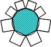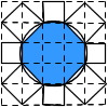 図は、円のまわりに大きい正方形を4枚と小さい正方形を4枚並べたものです。色をつけた八角形の面積は何cm2ですか。ただし、大きい方の正方形の面積は4cm2、 小さい方の正方形の面積は2cm2とします。