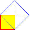 小さい正方形(黄色)の対角線を1辺とする正方形(青)は、図を見てわかる通り、面積が2倍になります。